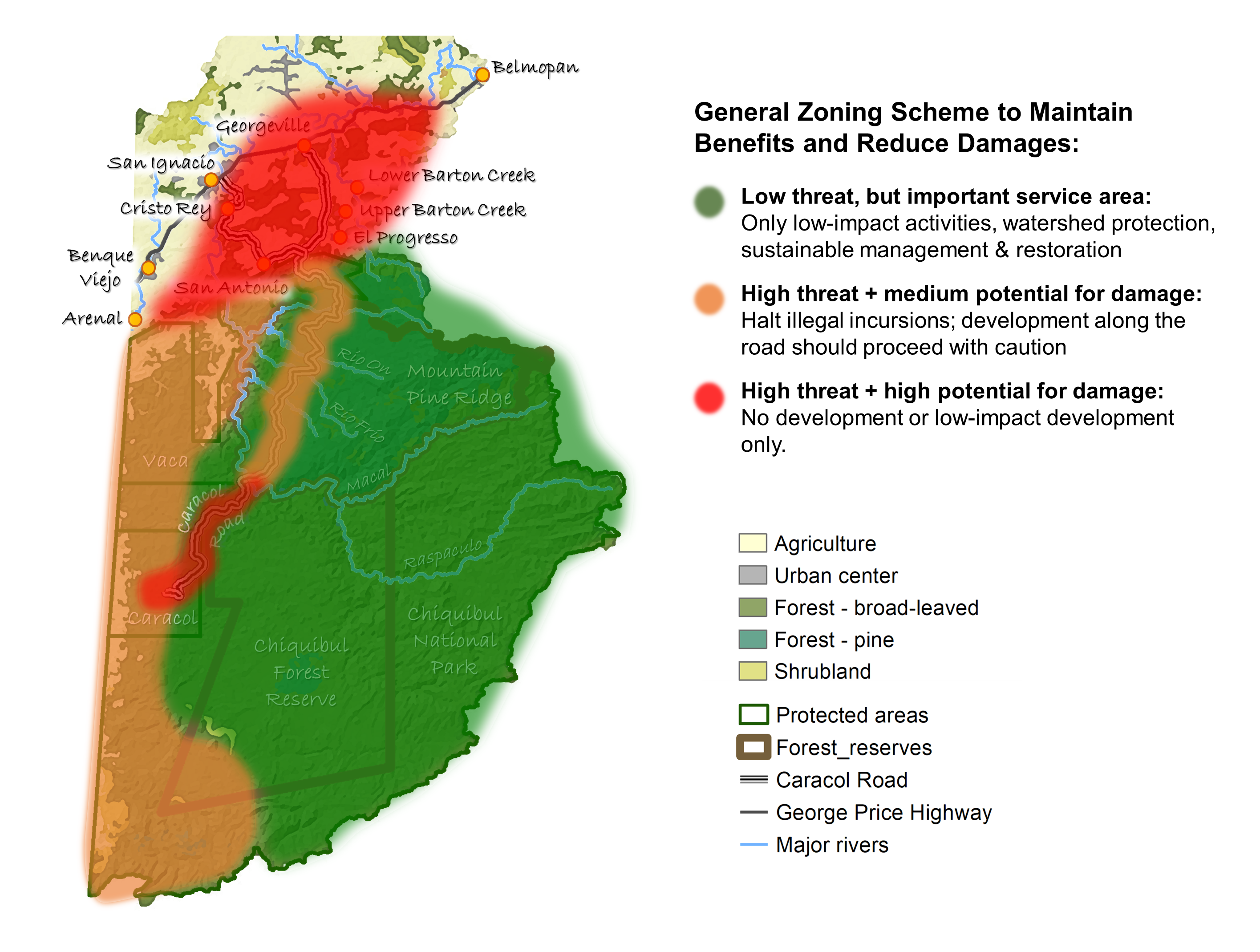 Implementation of the SDP activities will be guided by the following general zoning scheme, based on an assessment of development pressures and their tradeoffs in terms of environmental, social, and economic impacts.